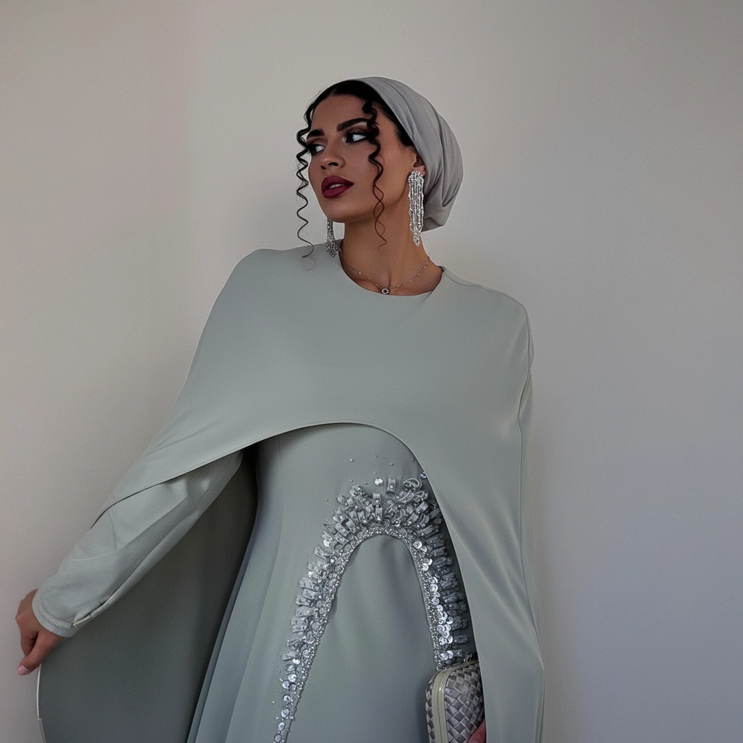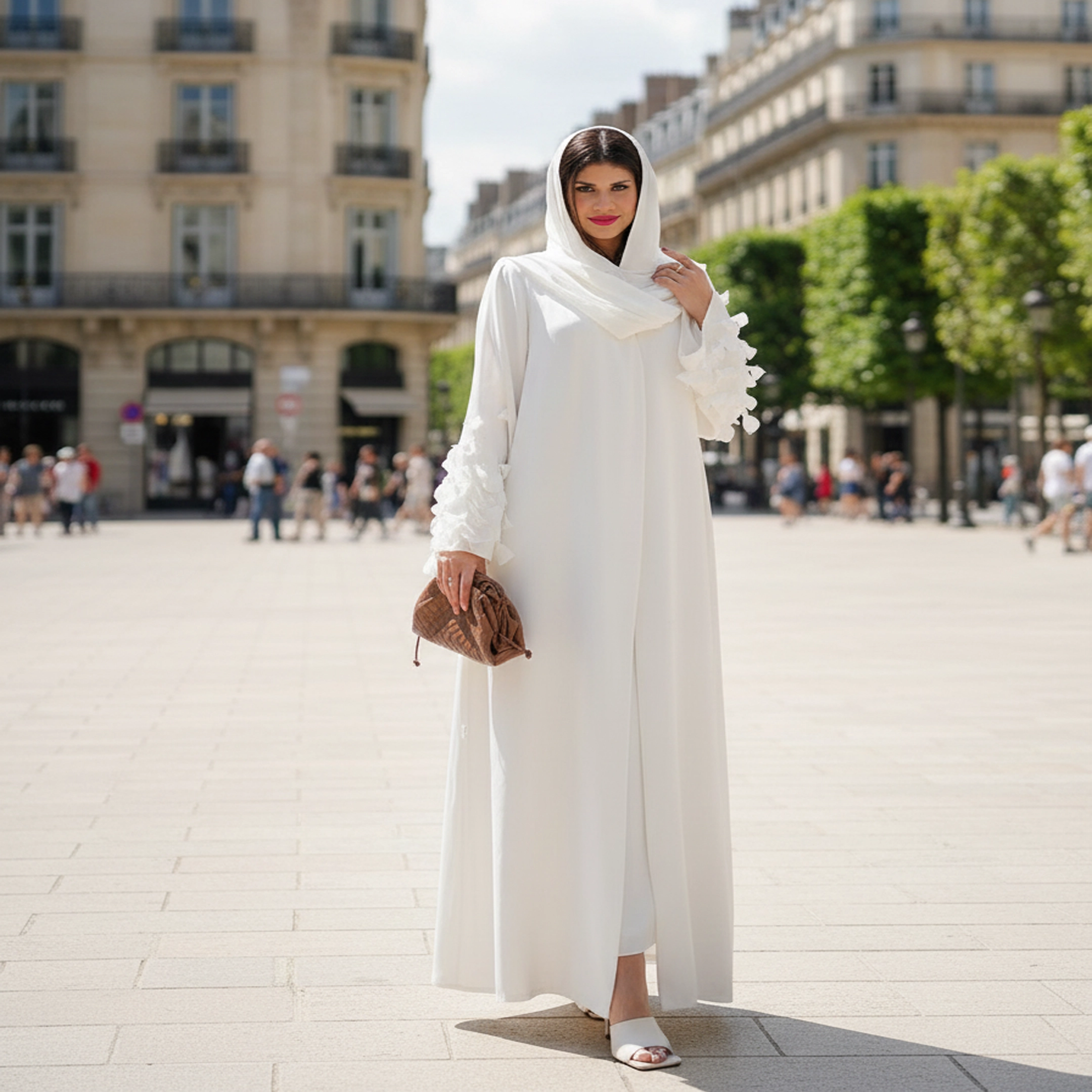 عباية فاخرة مطرزة بلون عاجي أنيق